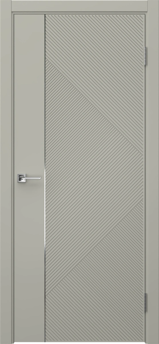 Межкомнатная современная каркасная фрезерованная дверь, покрытая эмалью в цвете RAL 7044 (серый шелк), глухая, с серебряным молдингом. Изготовлена из срощенного бруса сосны, МДФ и сотового наполнителя. В комплект входит дверная коробка с телескопическими наличниками. Изготавливаются под заказ двери нестандартных размеров.