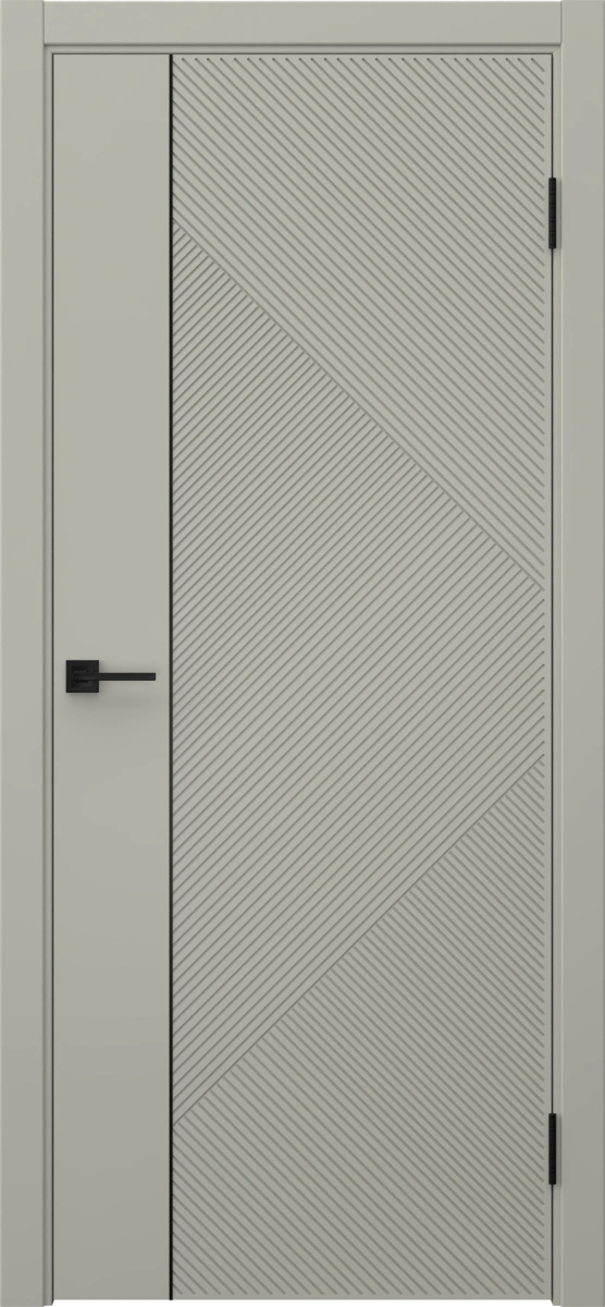Межкомнатная современная каркасная фрезерованная дверь, покрытая эмалью цвета RAL 7044 (серый шелк), глухая, с черным молдингом. Изготовлена из срощенного бруса сосны, МДФ и сотового наполнителя. Комплектуется дверной коробкой с телескопическими наличниками. Производятся под заказ двери нестандартных размеров.