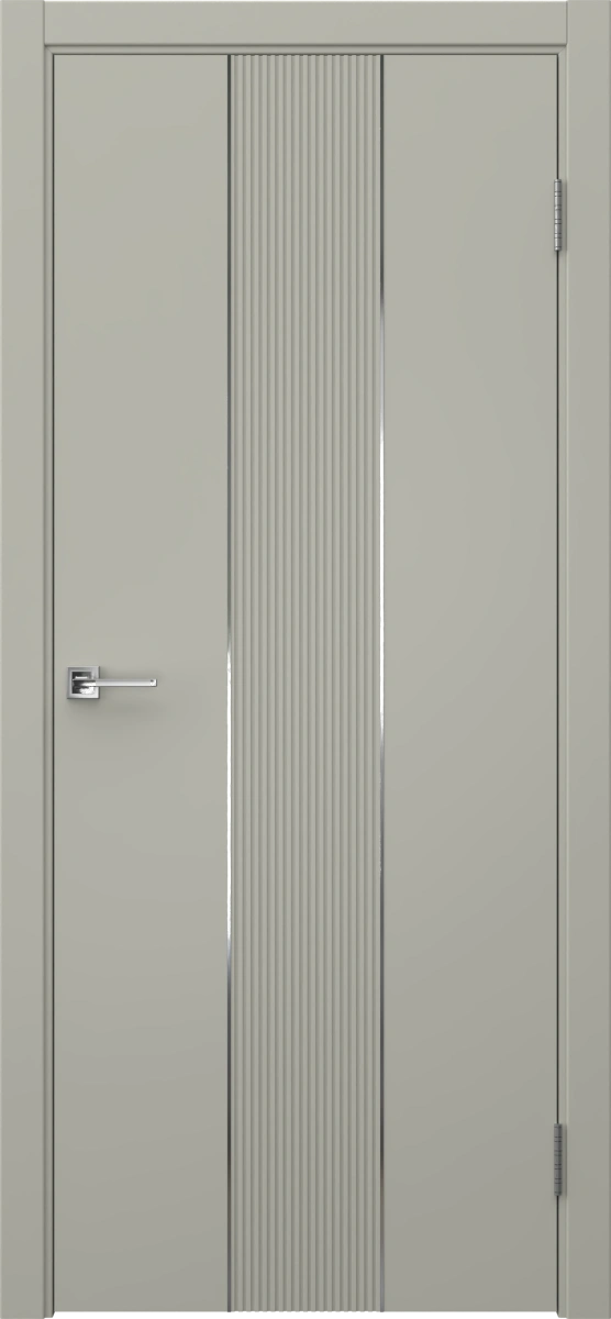 Межкомнатная современная каркасная фрезерованная дверь, покрытая эмалью в цвете RAL 7044 (серый шелк), глухая, с серебряным молдингом. Полотно изготовлено из срощенного соснового бруса, сотового наполнителя и МДФ. Комплектация включает в себя дверную коробку с телескопическими наличниками. Возможно изготовление дверей нестандартных размеров.