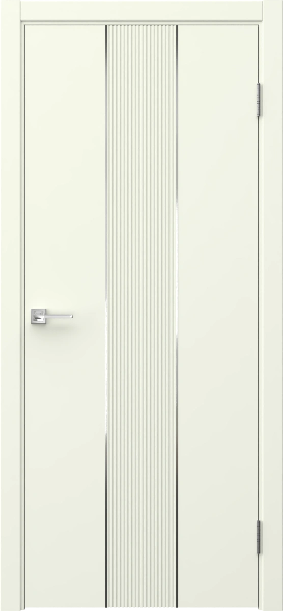 Межкомнатная современная каркасная фрезерованная дверь, покрытая эмалью белого цвета (RAL 9010), глухая, с серебряным молдингом. Изготовлена из срощенного бруса сосны, МДФ и сотового наполнителя. Комплектуется дверной коробкой с телескопическими наличниками. Производятся под заказ двери нестандартных размеров.