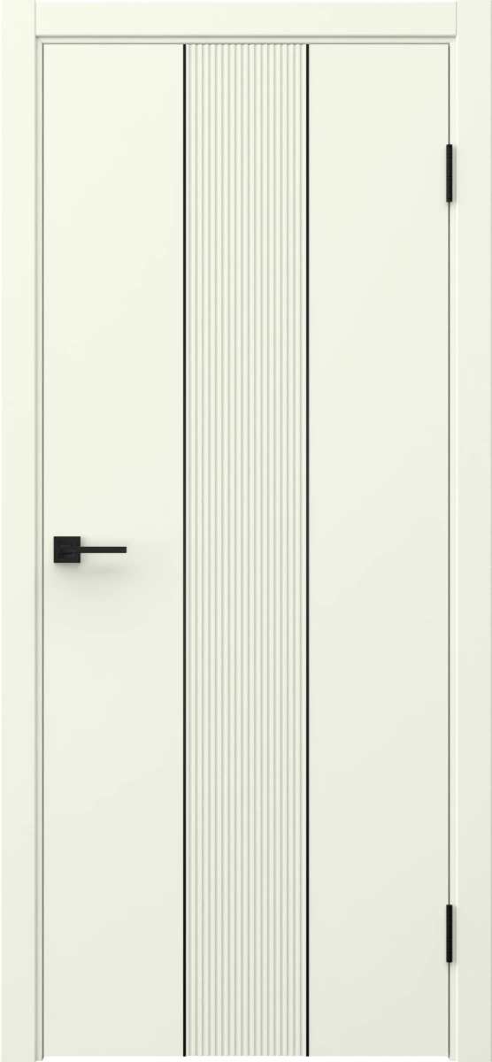 Межкомнатная современная каркасная фрезерованная дверь, покрытая эмалью белого цвета (RAL 9010), глухая, с черным молдингом. Полотно изготовлено из срощенного бруса сосны, МДФ и сотового наполнителя. Комплектация включает в себя дверную коробку с телескопическими наличниками. Возможно изготовление дверей нестандартных размеров.