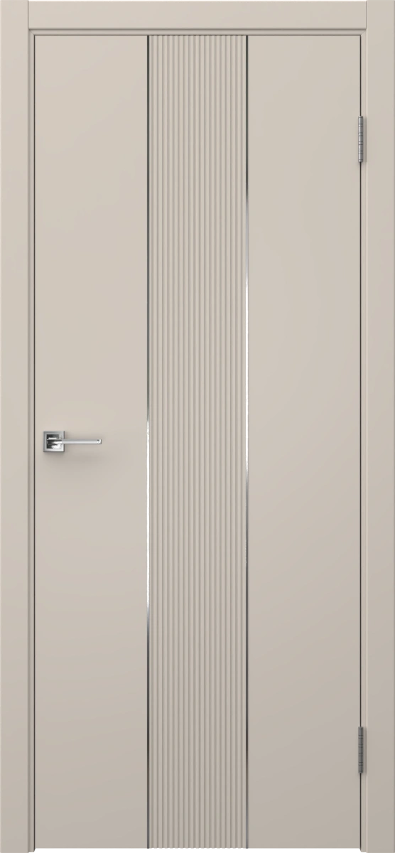 Межкомнатная современная каркасная фрезерованная дверь, покрытая эмалью цвета «мокко», глухая, с серебряным молдингом. Изготовлена из срощенного соснового бруса, МДФ и сотового наполнителя. Комплектация включает в себя дверную коробку с телескопическими наличниками. Под заказ производятся двери нестандартных габаритов.