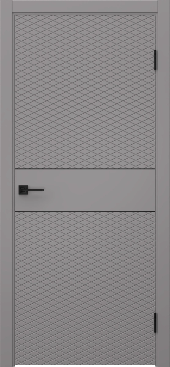 Межкомнатная современная каркасная фрезерованная дверь, покрытая эмалью в цвете RAL 7036 (платиново-серый), глухая, с черным молдингом. Полотно изготовлено из срощенного бруса сосны, МДФ и сотового наполнителя. Комплектуется дверной коробкой с телескопическими наличниками. Производятся под заказ двери нестандартных размеров.