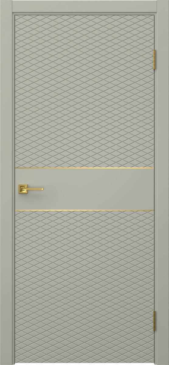 Межкомнатная современная каркасная фрезерованная дверь, покрытая эмалью цвета RAL 7044 (серый шелк), глухая, с золотым молдингом. Изготовлена из срощенного соснового бруса, МДФ и сотового наполнителя. В комплект входит дверная коробка с телескопическими наличниками. Возможно изготовление дверей нестандартных размеров.