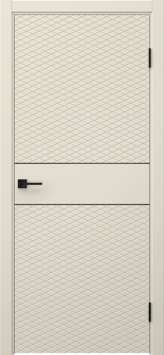 Межкомнатная современная каркасная фрезерованная дверь, покрытая эмалью цвета RAL 9001 (кремово-белый), глухая, с черным молдингом. Изготовлена из срощенного бруса сосны, МДФ и сотового наполнителя. Комплектуется дверной коробкой с телескопическими наличниками. Производятся под заказ двери нестандартных размеров.