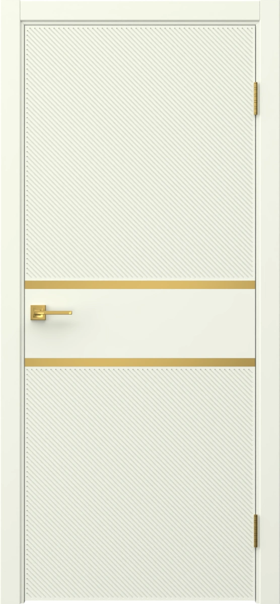 Межкомнатная современная каркасная фрезерованная дверь, покрытая эмалью белого цвета (RAL 9010), глухая, с золотым молдингом. Полотно изготовлено из срощенного бруса сосны, МДФ и сотового наполнителя. В комплект входит дверная коробка с телескопическими наличниками. Производятся под заказ двери нестандартных размеров.