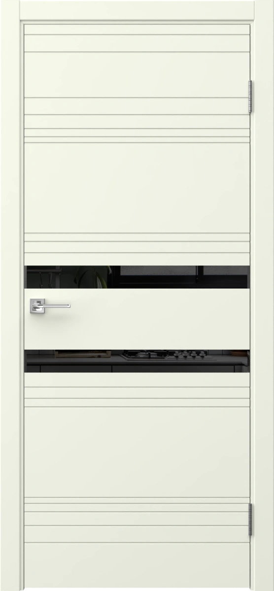 Межкомнатная современная фрезерованная каркасная дверь, покрытая эмалью белого цвета (RAL 9010), со стеклом лакобель черный. Изготовлена из срощенного соснового бруса, МДФ и сотового наполнителя. Дверная коробка с телескопическим наличником входит в комплект. Под заказ производятся двери нестандартных габаритов.