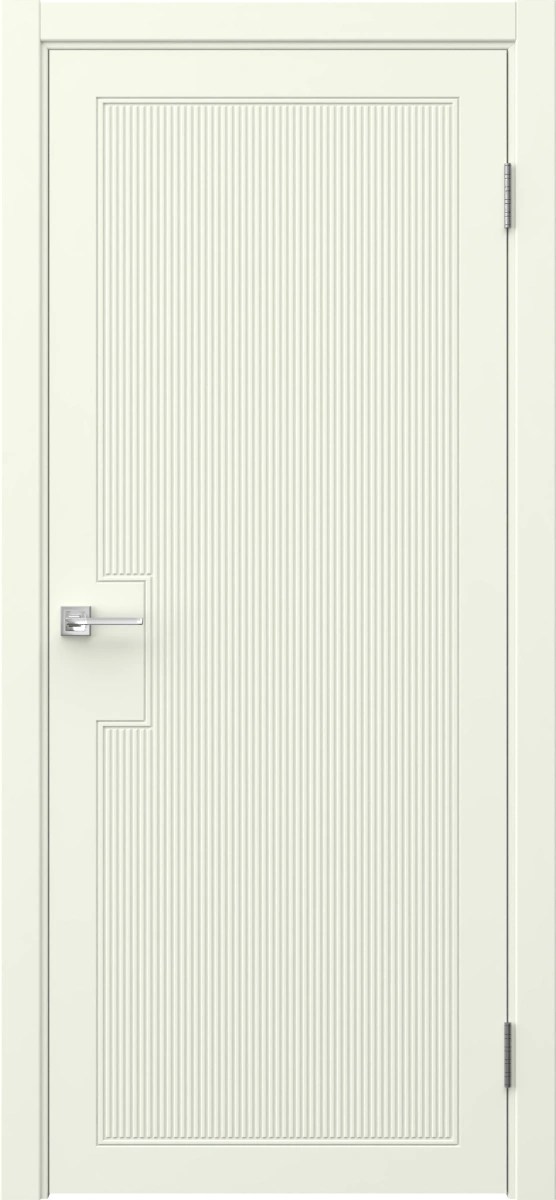 Межкомнатная современная фрезерованная каркасная дверь, покрытая эмалью белого цвета (RAL 9010), глухая. Полотно изготовлено из срощенного соснового бруса, сотового наполнителя и МДФ. В комплект входит дверная коробка с телескопическим наличником. Под заказ производятся двери нестандартных габаритов.