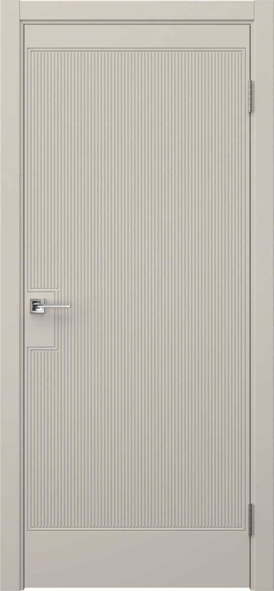 Межкомнатная современная фрезерованная каркасная дверь, покрытая эмалью цвета «мокко», глухая. Изготовлена из срощенного бруса сосны, МДФ и сотового наполнителя. Комплектуется дверной коробкой с телескопическим наличником. Возможно изготовление дверей нестандартных размеров.