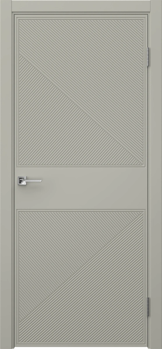 Межкомнатная современная фрезерованная каркасная дверь, покрытая эмалью в цвете RAL 7044 (серый шелк), глухая. Полотно изготовлено из срощенного соснового бруса, сотового наполнителя и МДФ. Комплектуется дверной коробкой с телескопическим наличником. Изготавливаются под заказ двери нестандартных размеров.