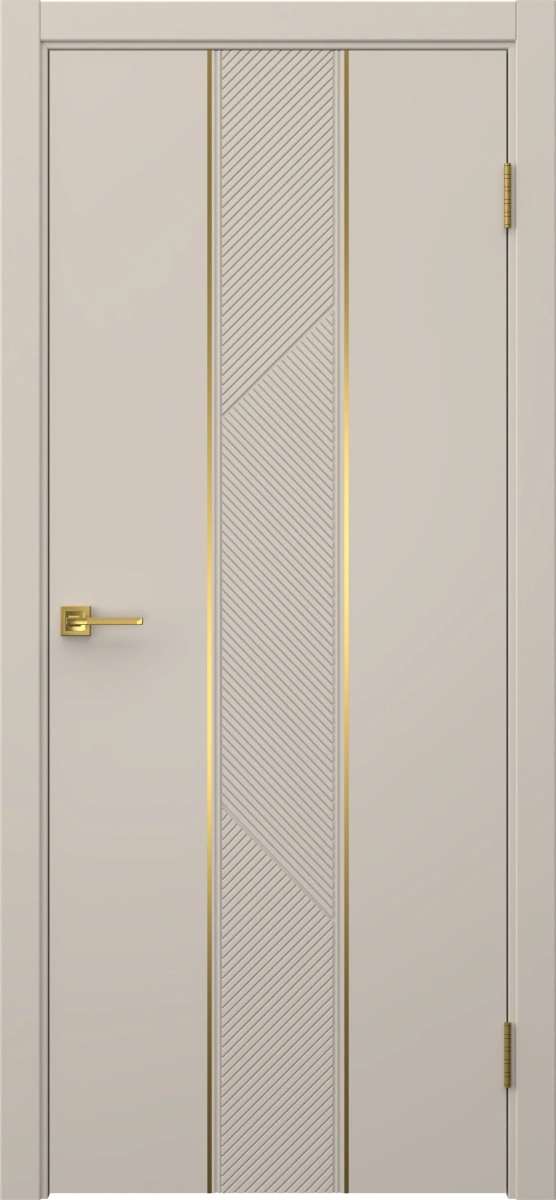 Межкомнатная современная фрезерованная каркасная дверь, покрытая эмалью цвета «мокко», глухая, с золотым молдингом. Полотно изготовлено из срощенного соснового бруса, сотового наполнителя и МДФ. Дверная коробка с телескопическим наличником входит в комплект. Изготавливаются под заказ двери нестандартных размеров.