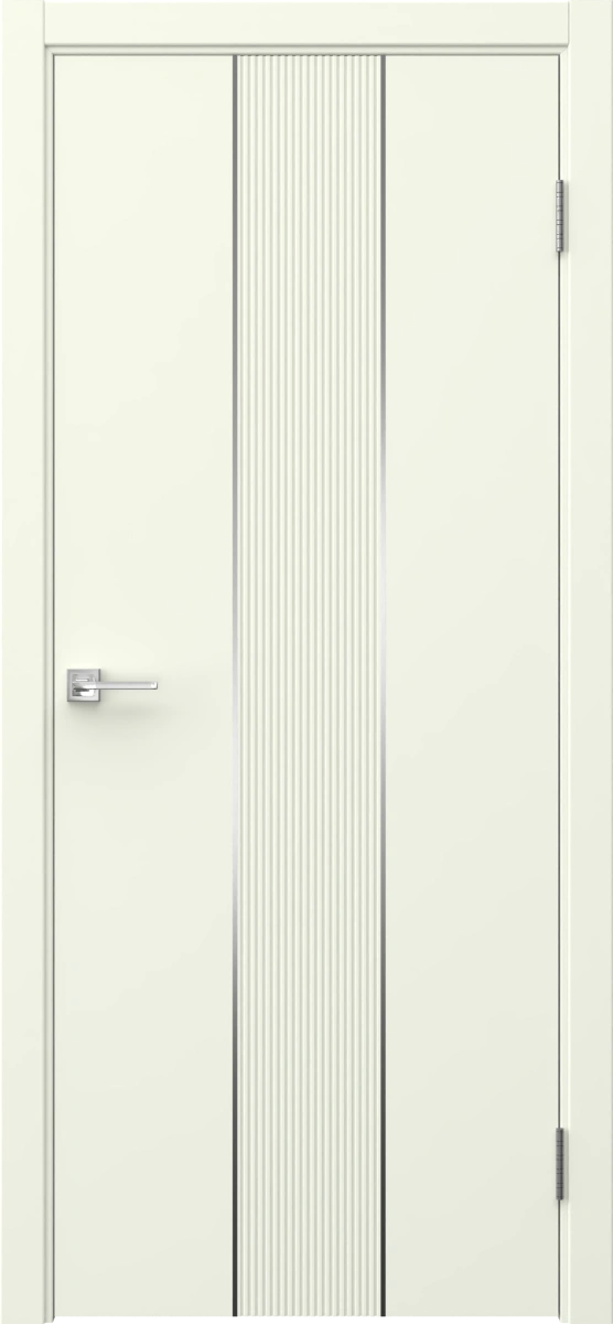Межкомнатная современная фрезерованная каркасная дверь, покрытая эмалью белого цвета (RAL 9010), глухая, с серебряным молдингом. Изготовлена из срощенного бруса сосны, МДФ и сотового наполнителя. Комплектуется дверной коробкой с телескопическим наличником. Под заказ производятся двери нестандартных габаритов.