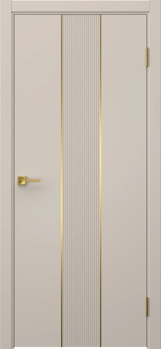 Межкомнатная современная фрезерованная каркасная дверь, покрытая эмалью цвета «мокко», глухая, с золотым молдингом. Полотно изготовлено из срощенного соснового бруса, сотового наполнителя и МДФ. Комплектация включает в себя дверную коробку с телескопическим наличником. Под заказ производятся двери нестандартных габаритов.