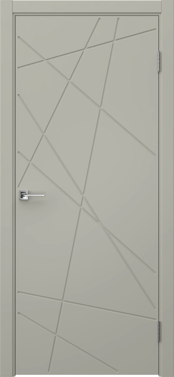 Межкомнатная современная фрезерованная каркасная дверь, покрытая эмалью в цвете RAL 7044 (серый шелк), глухая. Полотно изготовлено из срощенного соснового бруса, сотового наполнителя и МДФ. Дверная коробка с телескопическим наличником входит в комплект. Производятся под заказ двери нестандартных размеров.