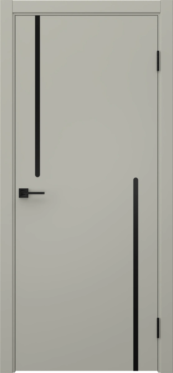 Межкомнатная современная каркасная дверь, покрытая эмалью цвета RAL 7044 (серый шелк), глухая, с черным молдингом. Полотно изготовлено из срощенного бруса сосны, МДФ и сотового наполнителя. Комплектуется дверной коробкой с телескопическим наличником. Изготавливаются под заказ двери нестандартных размеров.