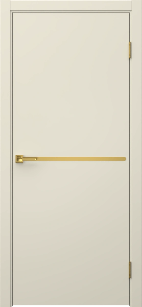 Межкомнатная современная каркасная дверь, покрытая эмалью в цвете RAL 9001 (кремово-белый), глухая, с золотым молдингом. Изготовлена из срощенного бруса сосны, МДФ и сотового наполнителя. Комплектуется дверной коробкой с телескопическим наличником. Под заказ производятся двери нестандартных габаритов.