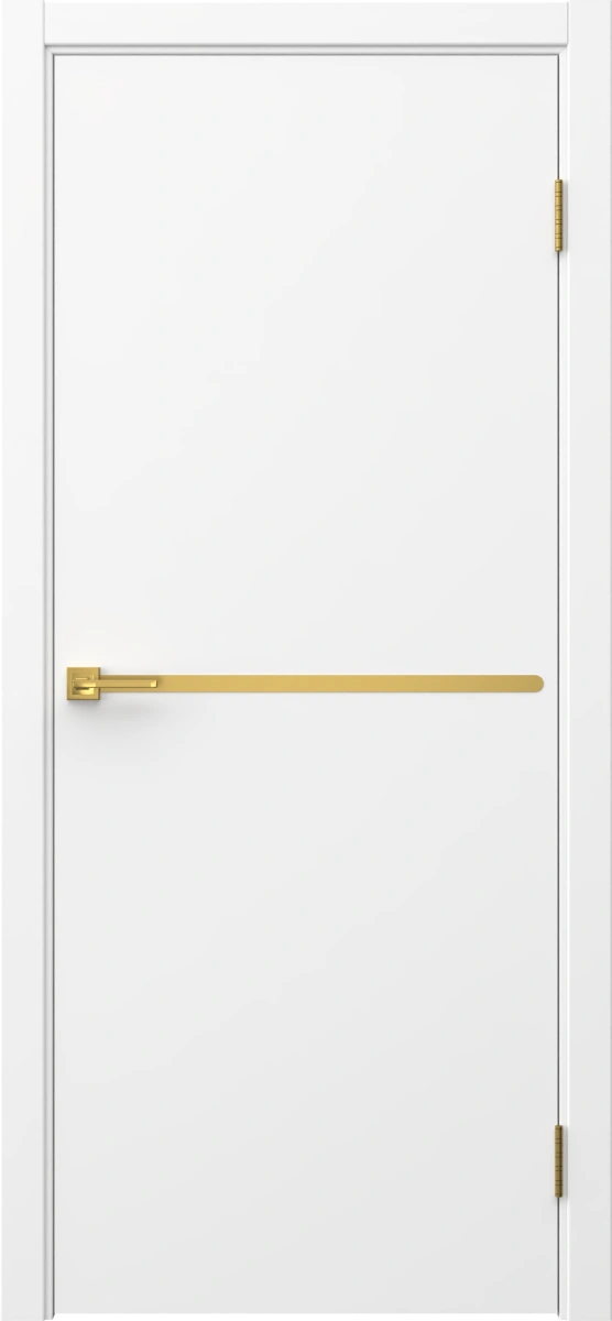 Межкомнатная современная каркасная дверь, покрытая эмалью белого цвета (RAL 9003), глухая, с золотым молдингом. Полотно изготовлено из срощенного соснового бруса, сотового наполнителя и МДФ. Дверная коробка с телескопическим наличником входит в комплект. Под заказ производятся двери нестандартных габаритов.