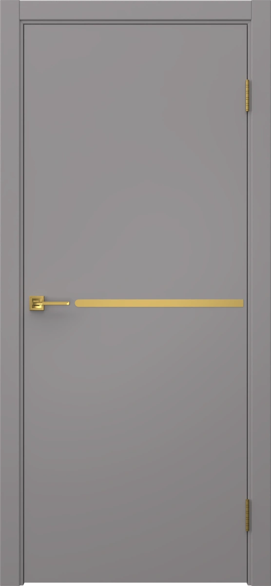 Межкомнатная современная каркасная дверь, покрытая эмалью цвета RAL 7036 (платиново-серый), глухая, с золотым молдингом. Полотно изготовлено из срощенного бруса сосны, МДФ и сотового наполнителя. Дверная коробка с телескопическим наличником входит в комплект. Изготавливаются под заказ двери нестандартных размеров.