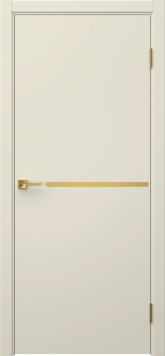 Межкомнатная современная каркасная дверь, покрытая эмалью в цвете RAL 9001 (кремово-белый), глухая, с золотым молдингом. Полотно изготовлено из срощенного соснового бруса, сотового наполнителя и МДФ. В комплект входит дверная коробка с телескопическим наличником. Изготавливаются под заказ двери нестандартных размеров.