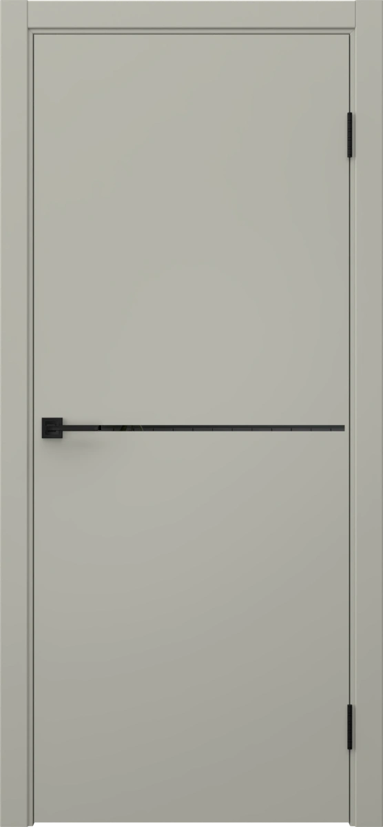 Межкомнатная современная каркасная дверь, покрытая эмалью в цвете RAL 7044 (серый шелк), со стеклом лакобель черный. Полотно изготовлено из срощенного бруса сосны, МДФ и сотового наполнителя. Комплектуется дверной коробкой с телескопическим наличником. Производятся под заказ двери нестандартных размеров.