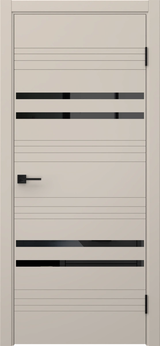 Межкомнатная современная фрезерованная каркасная дверь, покрытая эмалью цвета «мокко», со стеклом лакобель черный. Изготовлена из срощенного соснового бруса, МДФ и сотового наполнителя. Дверная коробка с телескопическим наличником входит в комплект. Под заказ производятся двери нестандартных габаритов.