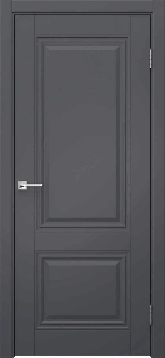 Межкомнатная классическая фрезерованная каркасная дверь, покрытая эмалью цвета «графит». Изготовлена из срощенного соснового бруса, МДФ и сотового наполнителя. Комплектация включает в себя дверную коробку с телескопическим наличником. Возможно изготовление дверей нестандартных размеров.