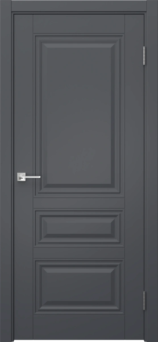 Межкомнатная классическая каркасная фрезерованная дверь, покрытая эмалью цвета «графит». Изготовлена из срощенного бруса сосны, МДФ и сотового наполнителя. В комплект входит дверная коробка с телескопическим наличником. Изготавливаются под заказ двери нестандартных размеров.