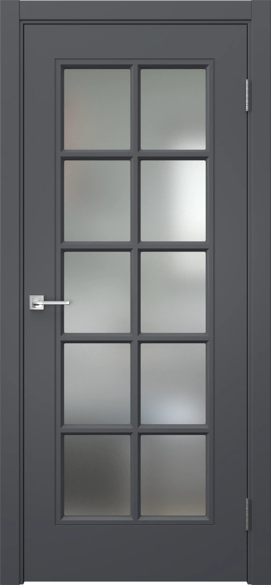 Межкомнатная классическая каркасная фрезерованная дверь с решеткой, покрытая эмалью цвета «графит», с матовым стеклом (сатинат). Изготовлена из срощенного соснового бруса, МДФ и сотового наполнителя. В комплект входит дверная коробка с телескопическим наличником. Изготавливаются под заказ двери нестандартных размеров.