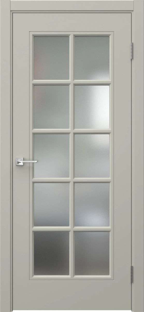 Межкомнатная классическая каркасная фрезерованная дверь с решеткой, покрытая эмалью в цвете RAL 7044 (серый шелк), с матовым стеклом (сатинат). Изготовлена из срощенного бруса сосны, МДФ и сотового наполнителя. Комплектация включает в себя дверную коробку с телескопическим наличником. Под заказ производятся двери нестандартных габаритов.