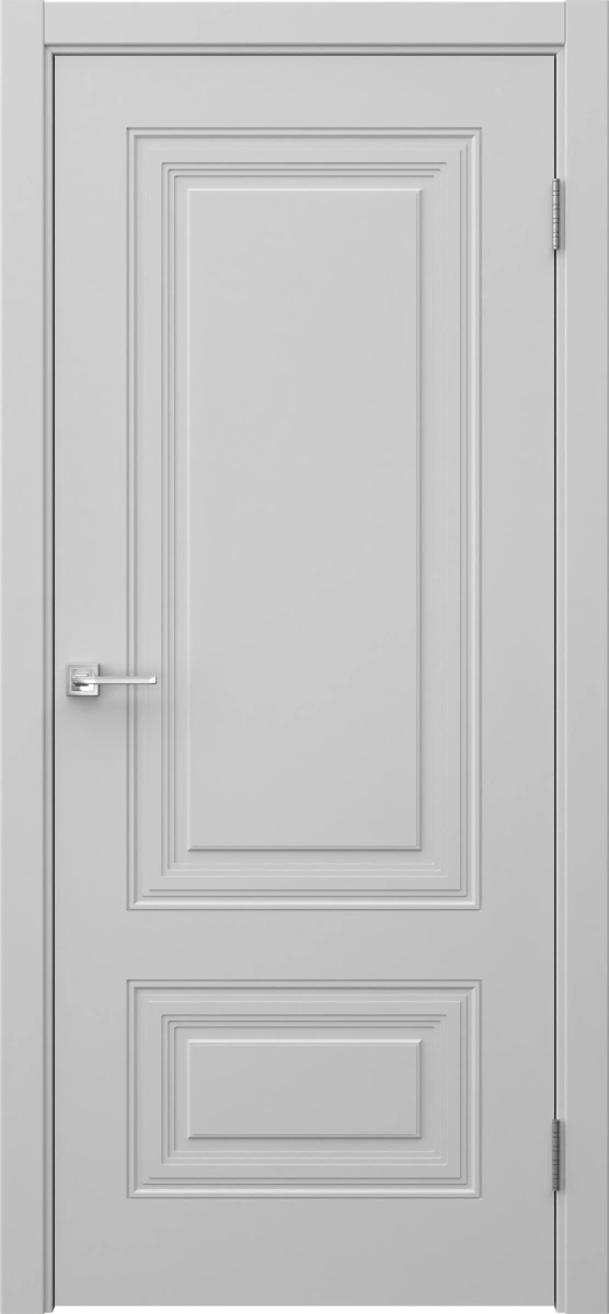 Межкомнатная классическая фрезерованная каркасная дверь, покрытая эмалью в цвете RAL 7047 (телегрей 4). Полотно изготовлено из срощенного соснового бруса, сотового наполнителя и МДФ. Комплектация включает в себя дверную коробку с телескопическим наличником. Под заказ производятся двери нестандартных габаритов.