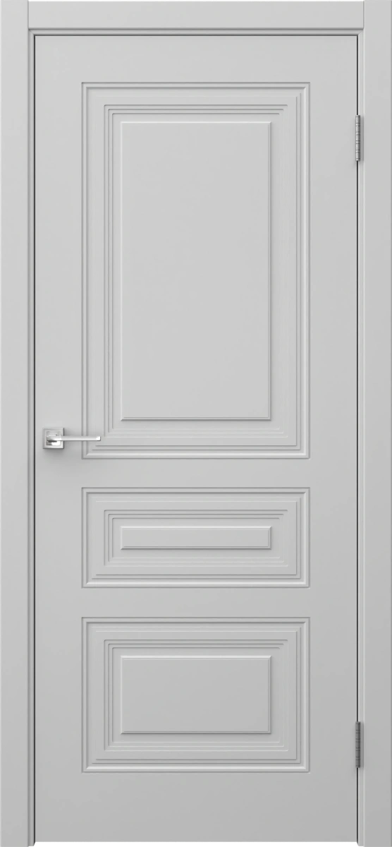 Межкомнатная классическая каркасная фрезерованная дверь, покрытая эмалью в цвете RAL 7047 (телегрей 4). Изготовлена из срощенного соснового бруса, МДФ и сотового наполнителя. Комплектация включает в себя дверную коробку с телескопическим наличником. Под заказ производятся двери нестандартных габаритов.
