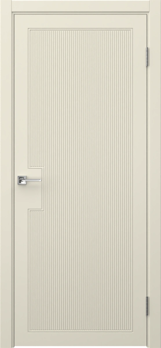 Современная каркасная фрезерованная межкомнатная дверь, покрытая эмалью цвета RAL 9001 (кремово-белый), глухая. Изготовлена из срощенного бруса сосны, МДФ и сотового наполнителя. В комплект входит дверная коробка с телескопическими наличниками. Под заказ производятся двери нестандартных габаритов.