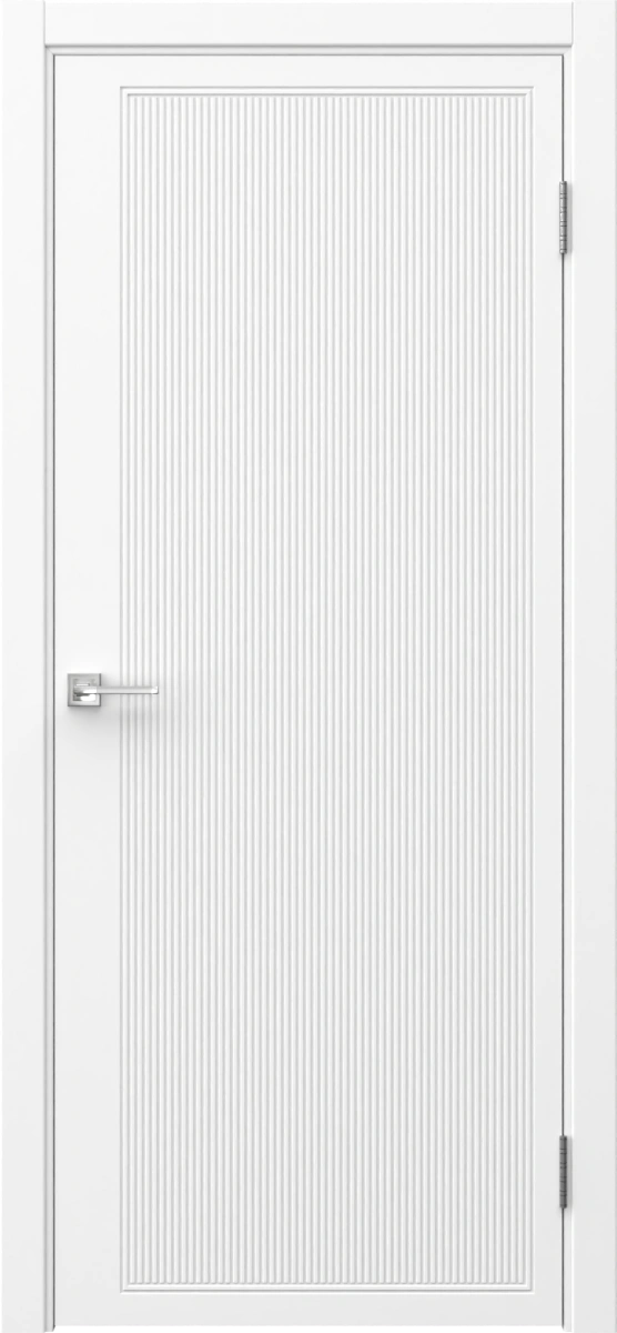 Современная каркасная фрезерованная межкомнатная дверь, покрытая эмалью белого цвета, глухая. Изготовлена из срощенного бруса сосны, МДФ и сотового наполнителя. Дверная коробка с телескопическими наличниками входит в комплект. Производятся под заказ двери нестандартных размеров.