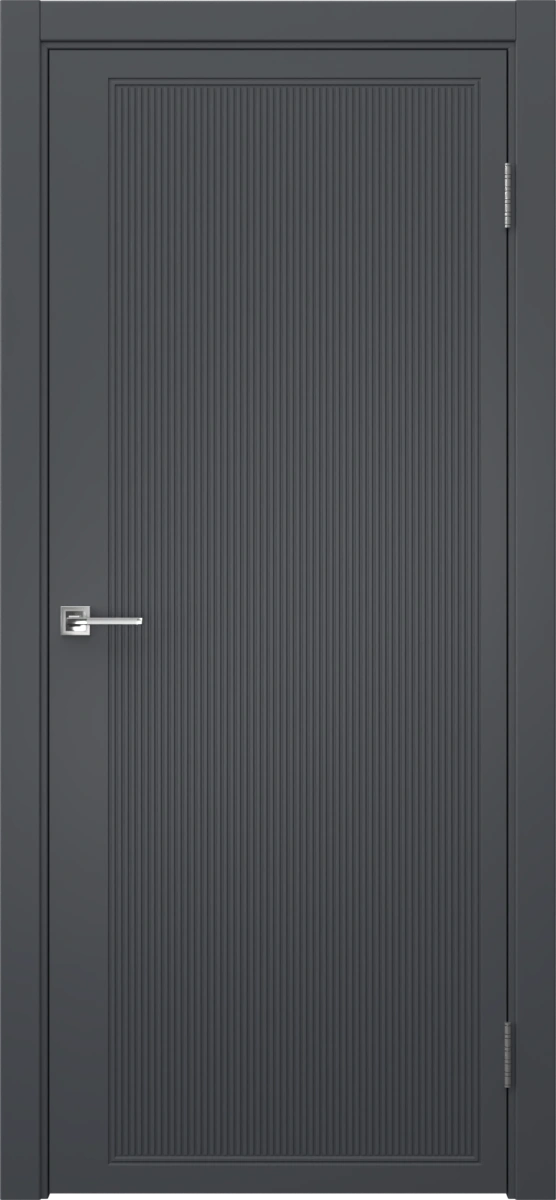 Современная каркасная фрезерованная межкомнатная дверь, покрытая эмалью цвета «графит», глухая. Изготовлена из срощенного бруса сосны, МДФ и сотового наполнителя. В комплект входит дверная коробка с телескопическими наличниками. Изготавливаются под заказ двери нестандартных размеров.