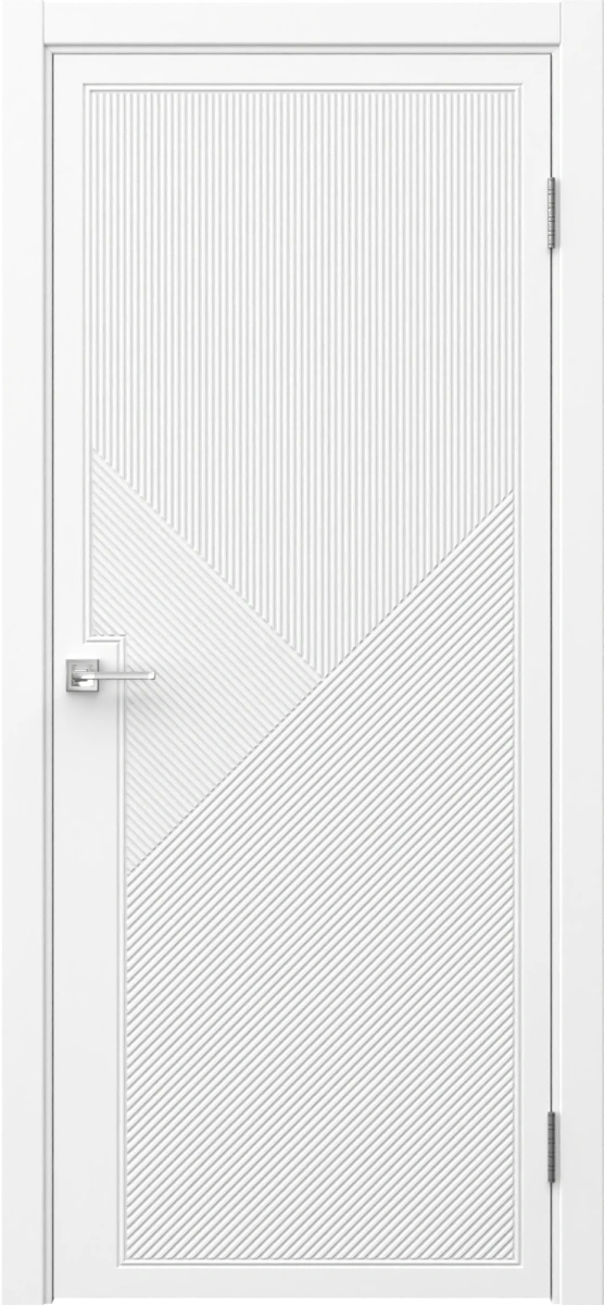 Современная каркасная фрезерованная межкомнатная дверь, покрытая эмалью белого цвета, глухая. Полотно изготовлено из срощенного соснового бруса, сотового наполнителя и МДФ. Комплектуется дверной коробкой с телескопическими наличниками. Возможно изготовление дверей нестандартных размеров.