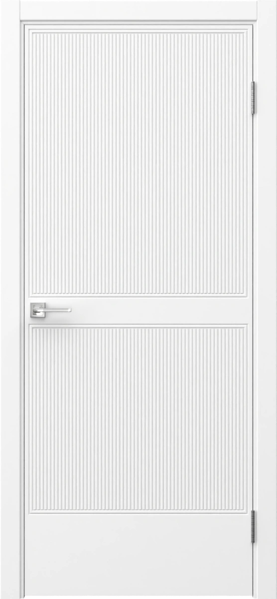 Современная каркасная фрезерованная межкомнатная дверь, покрытая эмалью белого цвета, глухая. Изготовлена из срощенного соснового бруса, МДФ и сотового наполнителя. Комплектуется дверной коробкой с телескопическими наличниками. Под заказ производятся двери нестандартных габаритов.