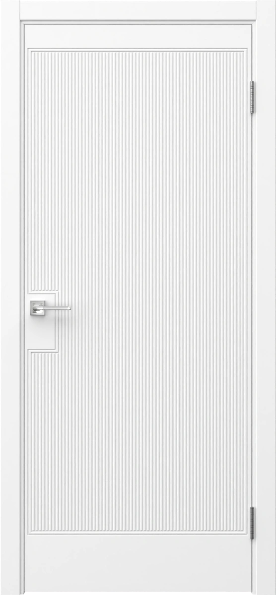Современная каркасная фрезерованная межкомнатная дверь, покрытая эмалью белого цвета, глухая. Изготовлена из срощенного бруса сосны, МДФ и сотового наполнителя. Комплектуется дверной коробкой с телескопическими наличниками. Под заказ производятся двери нестандартных габаритов.