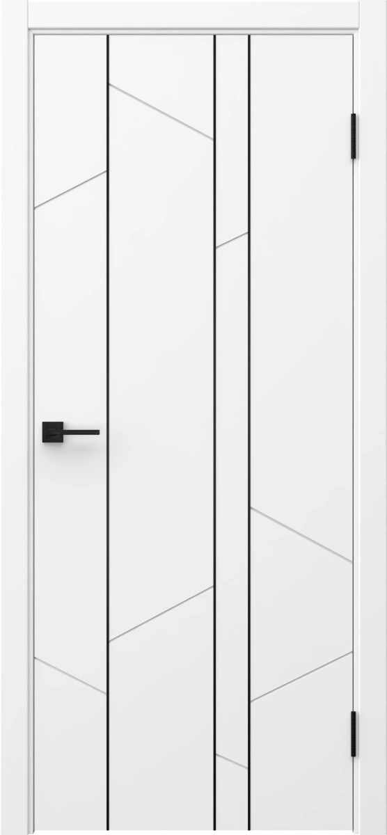 Современная каркасная фрезерованная межкомнатная дверь, покрытая эмалью белого цвета (RAL 9003), с черным молдингом. Полотно изготовлено из срощенного соснового бруса, сотового наполнителя и МДФ. В комплект входит дверная коробка с телескопическими наличниками. Под заказ производятся двери нестандартных габаритов.