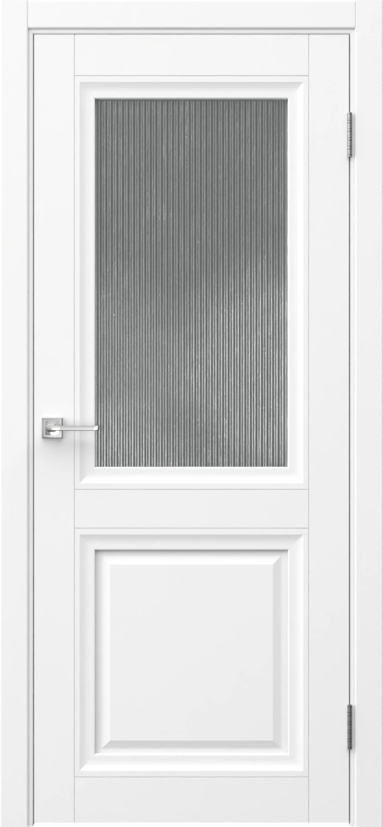 Классическая межкомнатная дверь с багетом покрытая экошпоном цвета «аляска», с матовым рифленым стеклом. Изготовлена из срощенного соснового бруса, МДФ и сотового наполнителя. Комплектация включает в себя дверную коробку с телескопическими наличниками. Под заказ производятся двери нестандартных габаритов.
